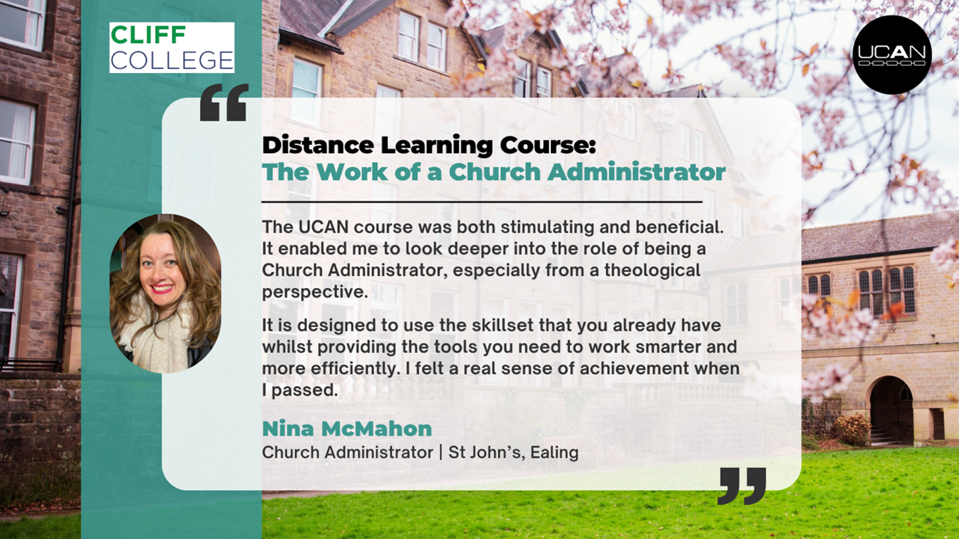 Come along to our online info evening on Monday 22nd January 2024 at 7pm and find out more about this nationally recognised course, delivered in partnership with Cliff College. Sign up here: https://www.churchadministrators.net/events